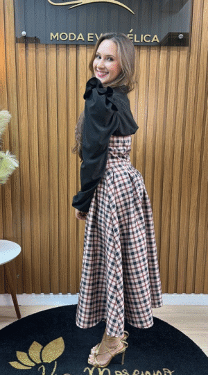 O vestido em alfaiataria xadrez modelo tomara que caia é um verdadeiro destaque!